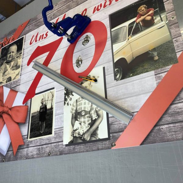 Individuelle Banner aus Mesh oder PVC-Plane mit Ösen. Wir drucken personalisierte Banner in brillanten Farben und verschiedenen Größen. Ob für Ihre Firma oder Private Anlässe. Wählen Sie aus wetterfesten Materialien für den Innen- und Außenbereich. Einfache Anbringung dank stabiler Ösen. Ob mit Foto, Namen oder individuellem Design.