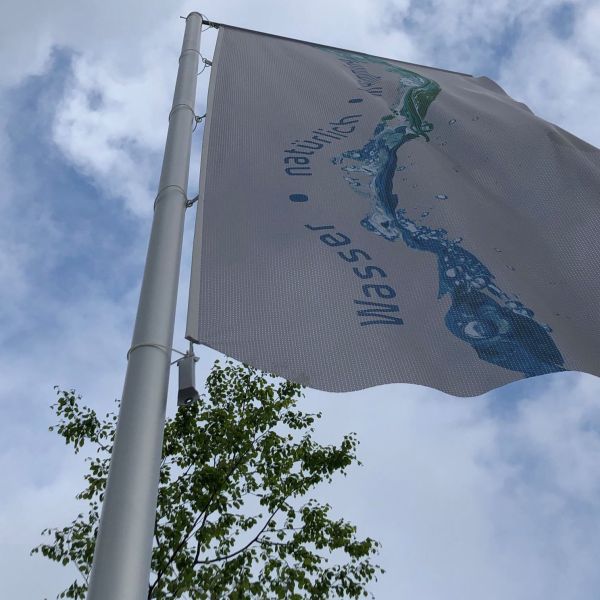 Individuell bedruckte Fahnen in unterschiedlichen Materialien und Formaten, wetterfest und langlebig.