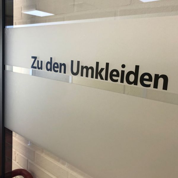 Sichtschutzlösung für das Schwimmbad Löningen mit eleganter Glasdekorfolie.